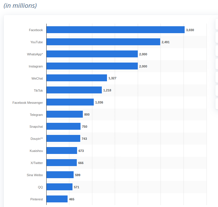 Most of the world doesn’t use Twitter www.statista.com Fun fact: Most of the world doesn’t use twitter. It’s not even among the top 10 social media platforms. Most popular social networks worldwide as of October 2023, ranked by number of monthly active users