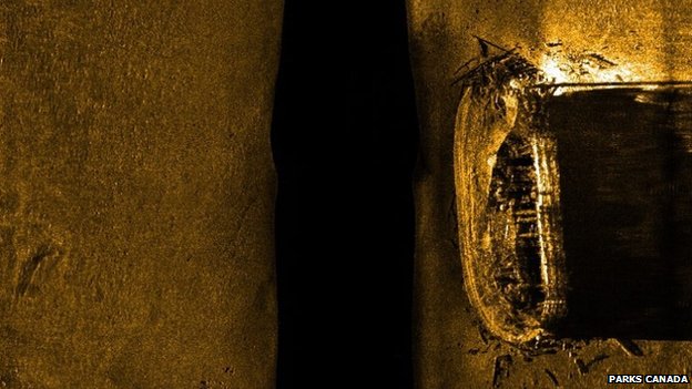 Expedition sonar images from the waters of Victoria Strait, just off King William Island, clearly show the wreckage of a ship on the ocean floor.
