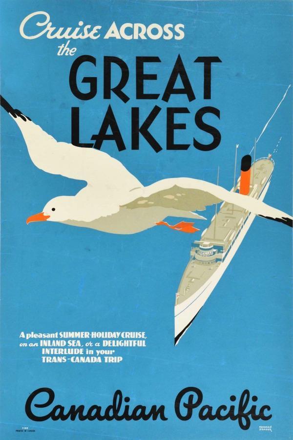 A Pleasant Summer Holiday Cruise Cruise Across the Great Lakes – Canadian Pacific travel poster Ad. (1936)