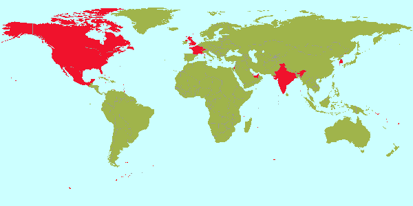 For the geographically challenged: U.S.A, Canada, Mexico, Jamaica, South Korea, India, Israel, U.K., Switzerland, France, and