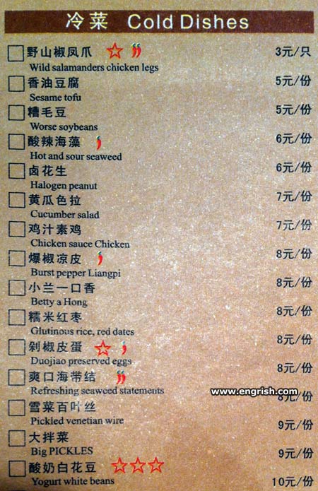 I’ll skip the beans and go for the refreshing seaweed statements and the halogen peanuts please. And Mr Morrow will have the pickled venetian wire. 😉