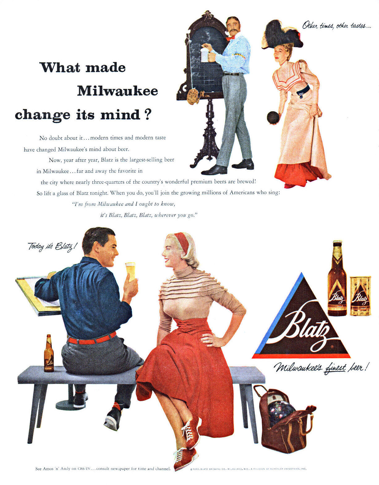 1953 Blatz Brewing Co ad:
