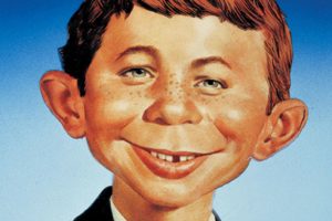 Mad Magazine was known for its striking front covers, in which it parodies both current affairs and popular television programmes. It often featured the magazine’s gap-toothed child mascot Alfred E. Newman on the cover.
