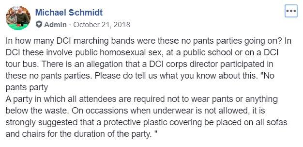 A Vile Troll’s Weird Obsession “Dr.” Michael E. Schmidt is obsessed with homosexual no pants parties: