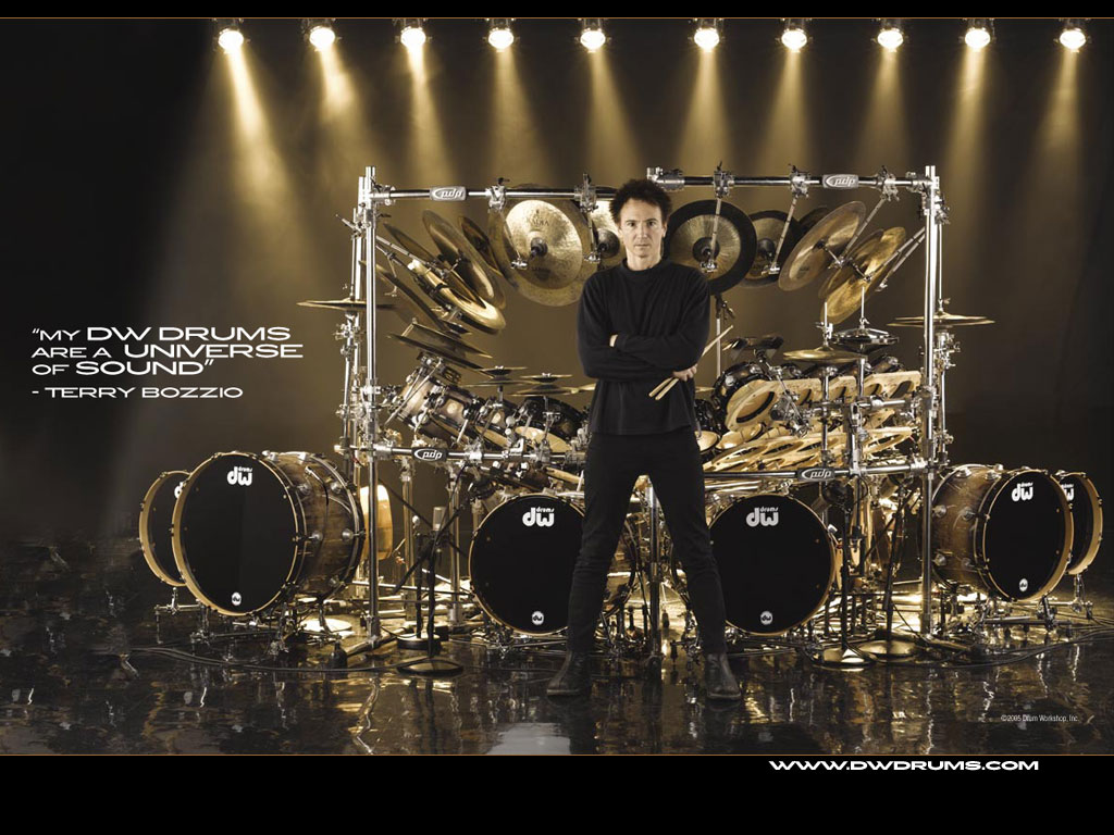 Holy Crap! Terry Bozzio‘s new drum kit (click photo to see larger image). Image stolen from dwdrums.com.