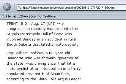Update: Looks like CNN corrected their error (11 November 2003). The Moonie Rag Washington Times, on the other hand, has yet to correct the same error in their initial August 17, 2003 report: