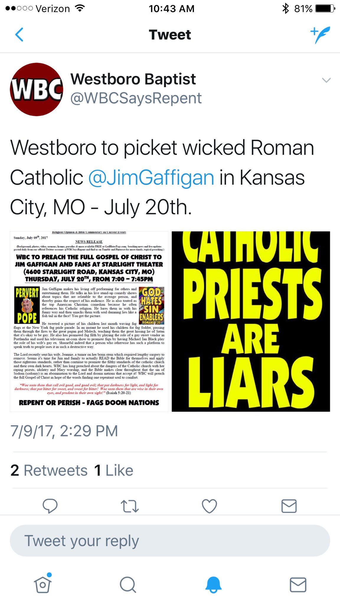 Reminder: I'll be performing my wicked & controversial comedy this summer in KC and all across this sinful country. pic.twitter.com/cPPH7njSDg
