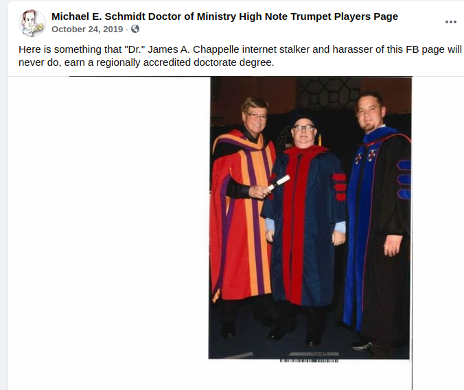 “Dr.” Michael E. Schmidt is actually correct for once. You’ll never see me go more than $110,000 in debt to receive an objectively worthless doctoral degree from a diploma mill.